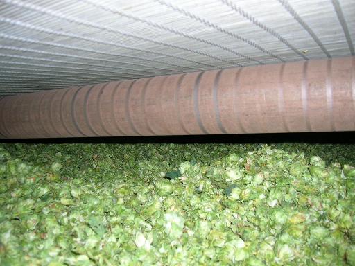 Vrstva chmelových šišek při průchodu kontinuální sušičkou