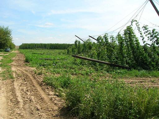 V sobotu 25.7.2009 v důsledku silné vichřice došlo ke stržení dvou částí chmelnice Dolek v Kokorách.
